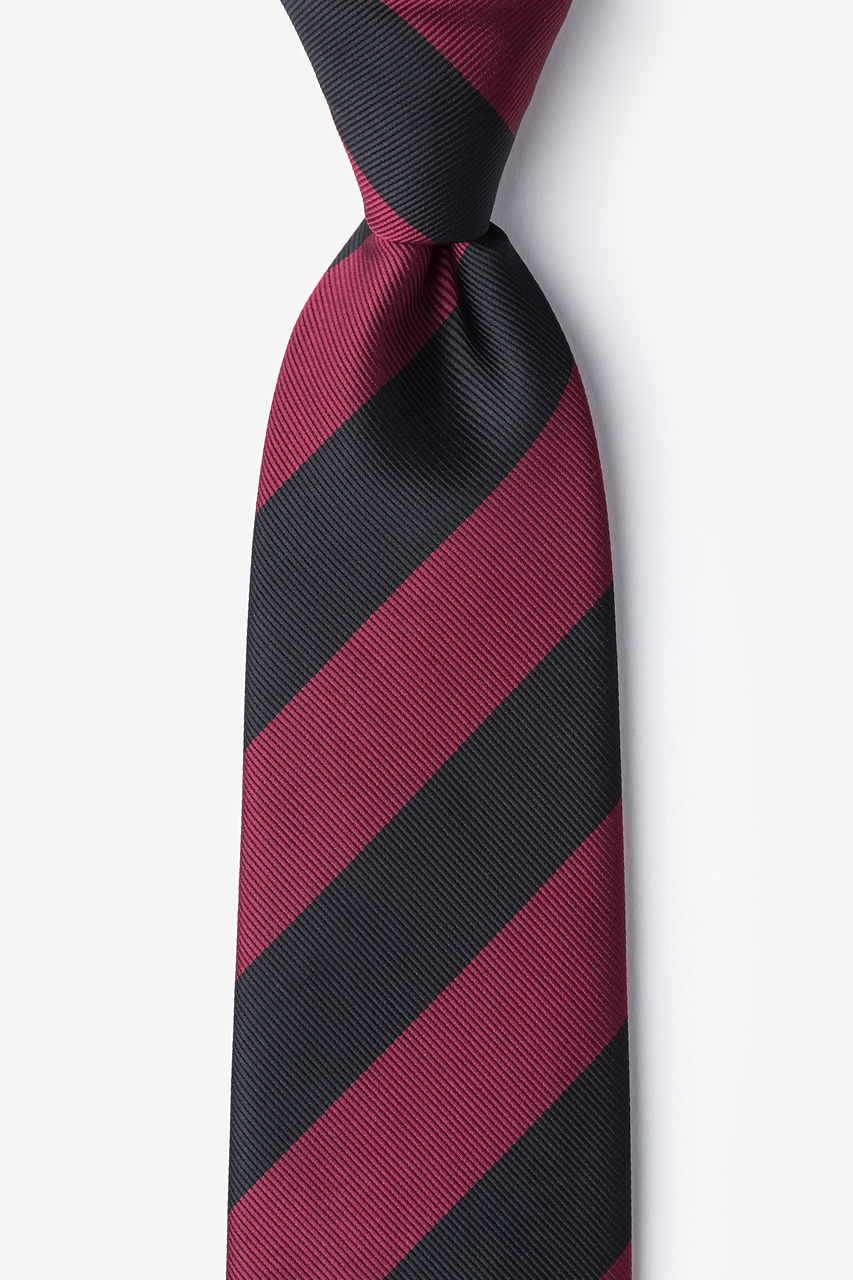 Every distinguished gentleman should own a classic collegiate stripe tie. It's ease of pairing with dress shirts and suits alike has made this design a timeless favorite over the years and a must have for school and business uniforms. Each extra long tie is designed with 100% woven microfibers for a sturdy tie that is sure to outlast the seasons and make for easy maintenance. Featured in maroon and black stripe, we invite you to fall in love with this classic.