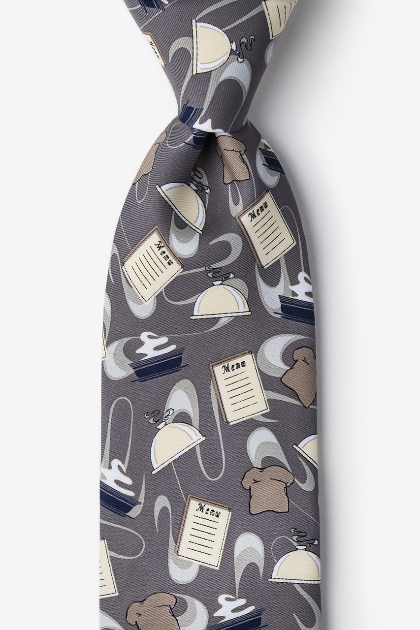 Tres magnifique! Give your own Emeril this wonderful grey necktie that honors the food fanatics amongst us.