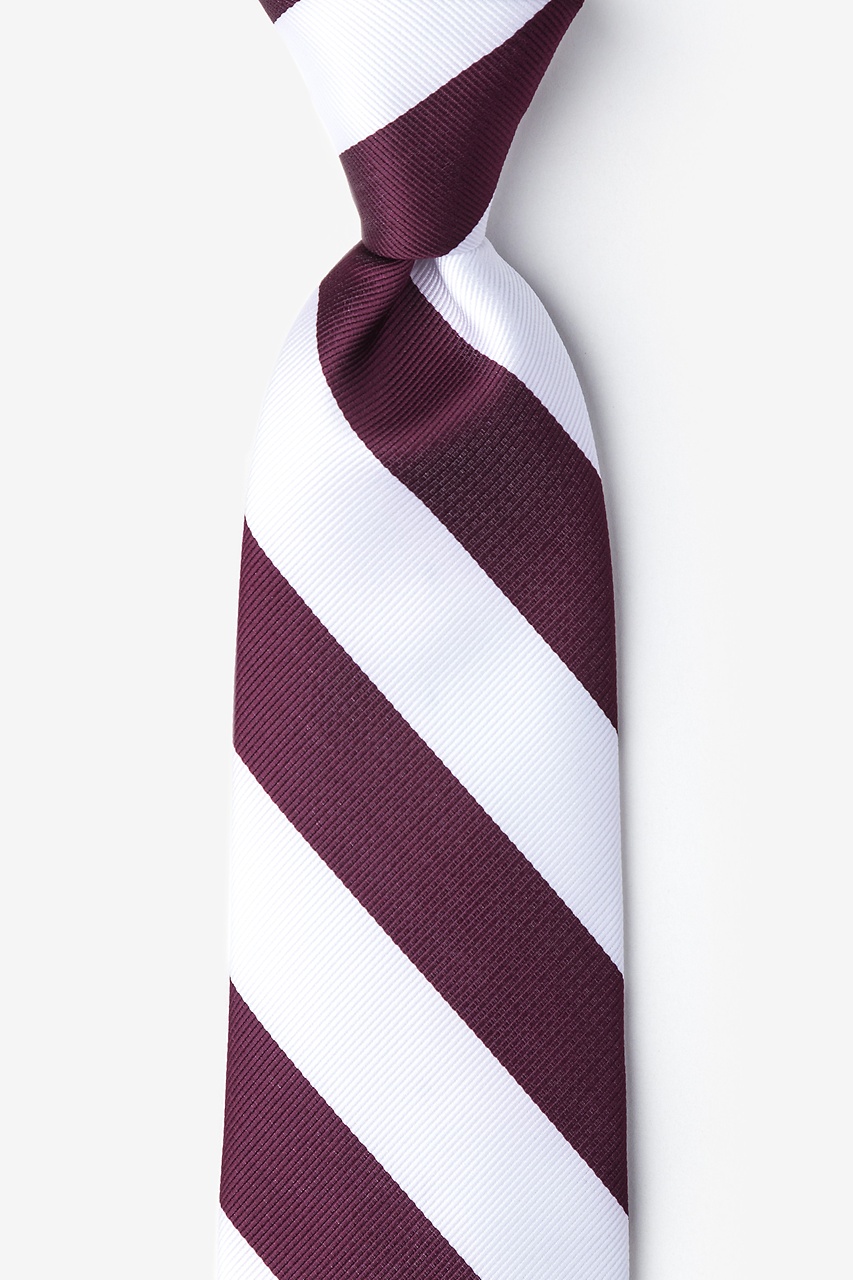 Every distinguished gentleman should own a classic collegiate stripe tie. It's ease of pairing with dress shirts and suits alike has made this design a timeless favorite over the years and a must have for school and business uniforms. Each necktie is designed with 100% woven microfibers for a sturdy tie that is sure to outlast the seasons and make for easy maintenance. Featured in maroon and white stripe, we invite you to fall in love with this classic.