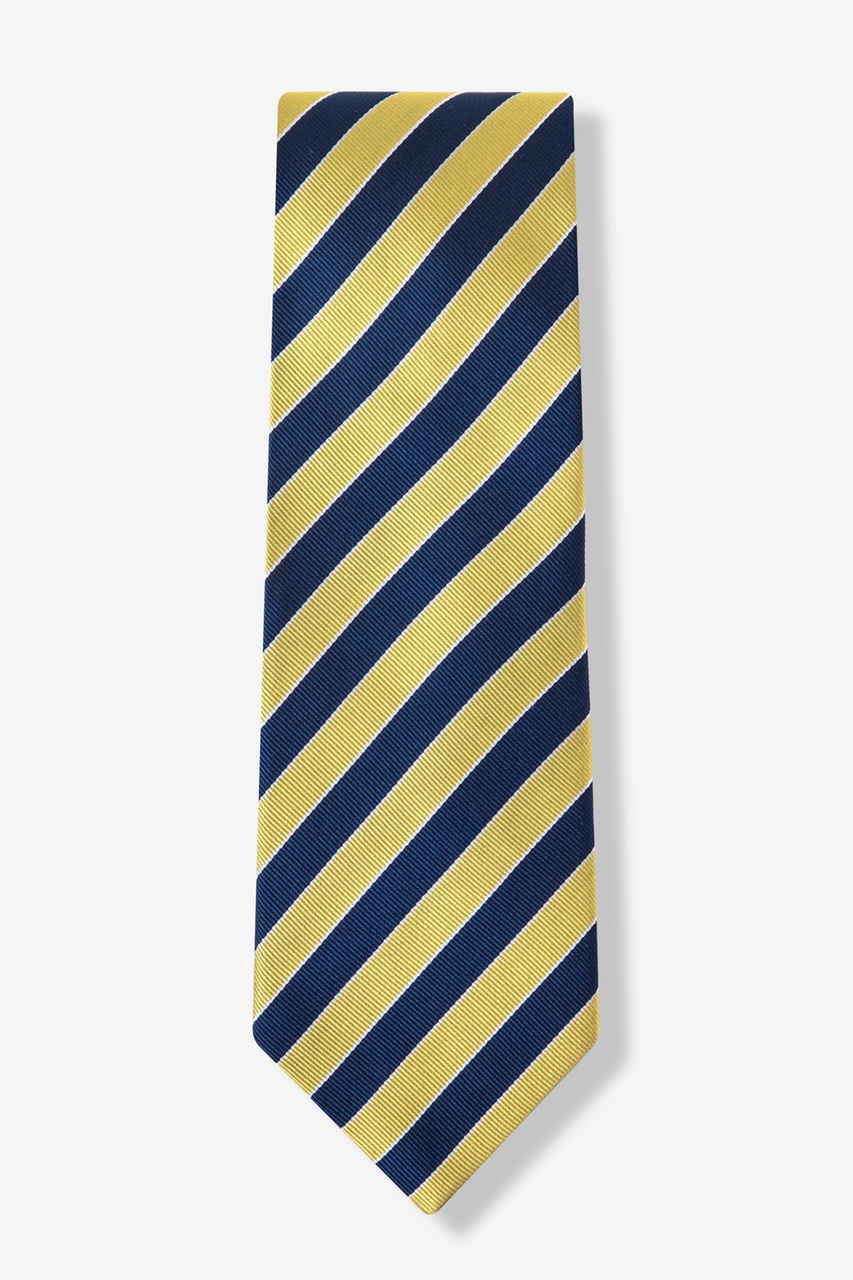 Principessa Regale Neckwear has raised the bar by harmonizing fresh designs with superior Italian silks and dashing elegance. Finely woven stripes of gold, rich navy blue and lustrous silver come together to create a brilliantly modern design on this 100% silk men's tie. Each necktie from Principessa Regale Neckwear is hand made and self-tipped, providing a touch of extravagant splendor for anyone who welcomes exceptional neckwear.