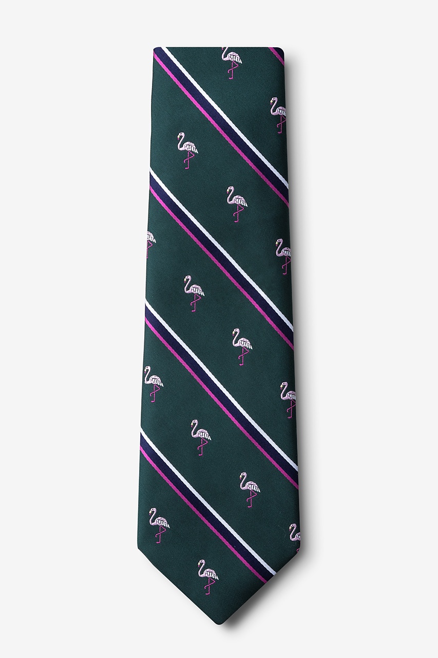 Who ever said flamingos were only for your lawn? The idea is outdated. They look even better on our green Flamingo stripe tie.
