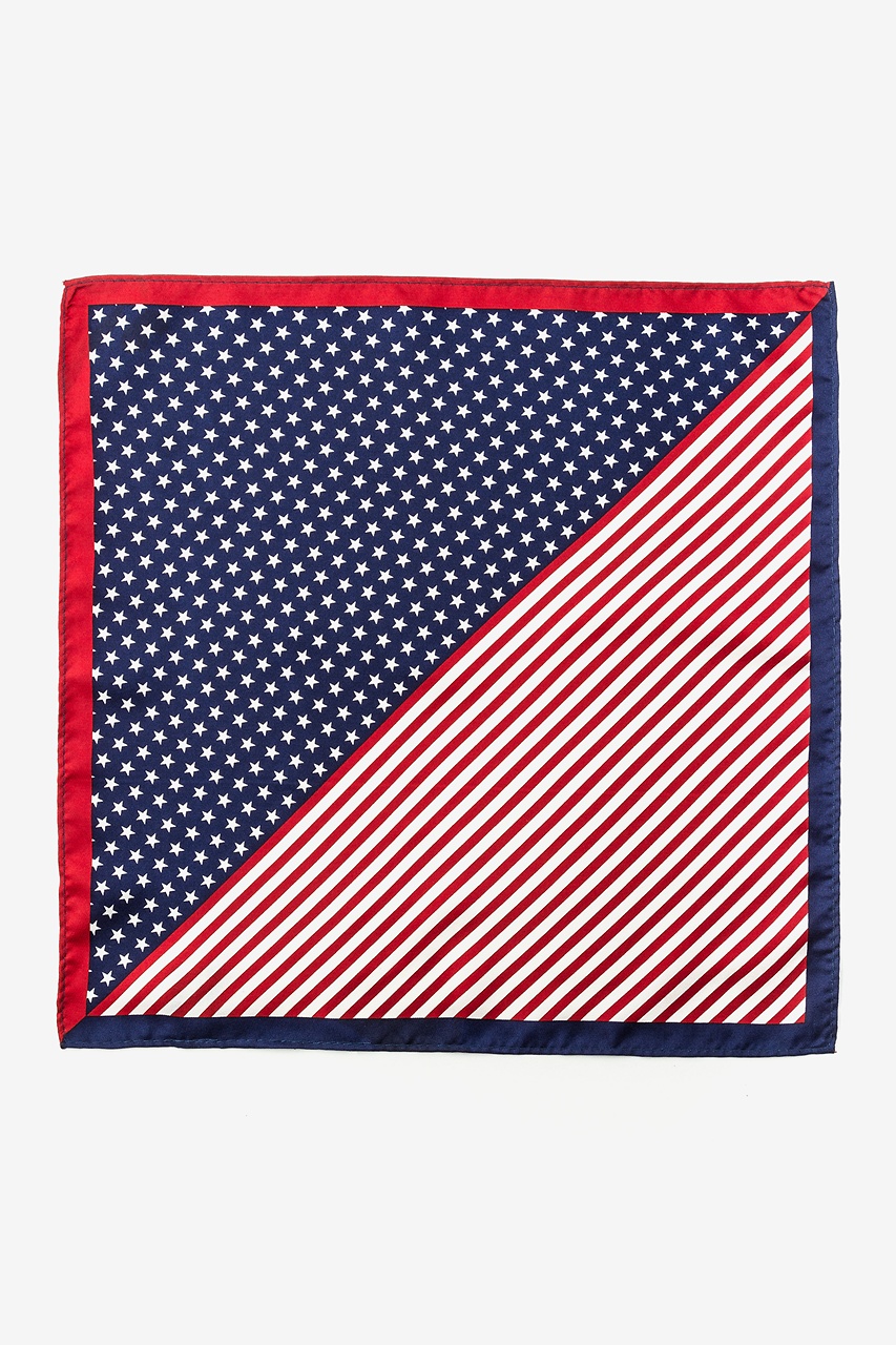 Show off your patriotism with the red, white, and blue Stars and Bars pocket square. This Wild Ties creation takes on a modern approach to the classic stars and stripes. The thin red and white stripes run diagonally, adjacent to multiple white stars on a navy blue background. Stars and Bars is a sleek addition to any gentleman’s pocket square collection.