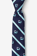Whale you look at this. This is the type of skinny tie that'll make a splash every time you wear it. It features a repeating pattern of a whale's tail peeking through ocean waves over striped lines.